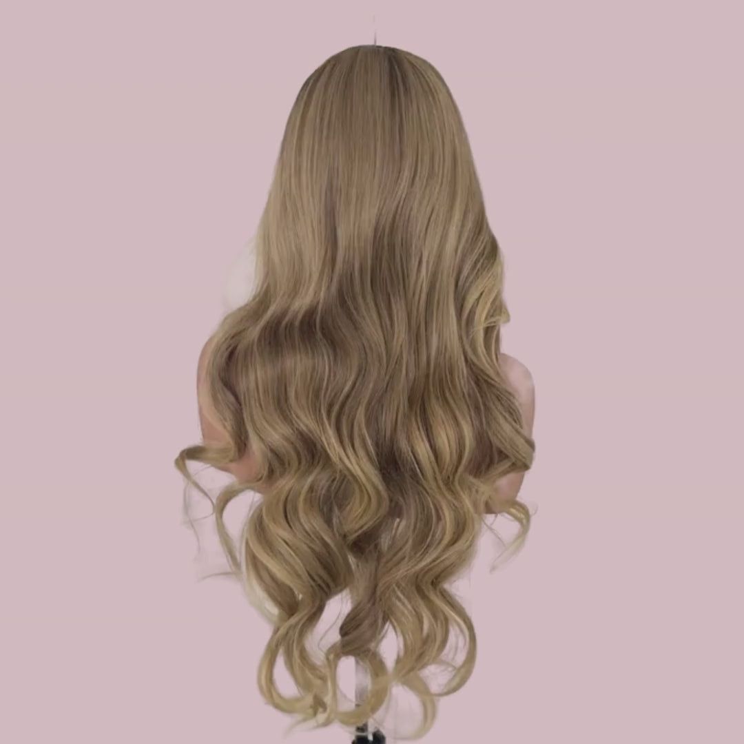 Color: golden blonde highlights and deep brunette roots for a naturally sunlit look
